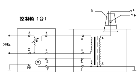 油浸式試驗(yàn)變壓器為單相變壓器,用工頻220V或380V電源接入操作箱(臺(tái)),經(jīng)操作箱內(nèi)自耦調(diào)壓器調(diào)節(jié)至0-200V或0-400V電壓輸出至試驗(yàn)變壓器的初組繞組,根據(jù)電磁感應(yīng)原理,在試驗(yàn)變壓器高壓繞組可獲得試驗(yàn)所需的高電壓。 1. 交流油浸式試驗(yàn)變壓器:見圖3