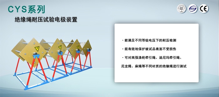 根據國家《DLT 976-2005 帶電作業工具、裝置和設備預防性試驗規程》,我們研發本裝置可對高強滌綸牽引繩、迪尼瑪牽引繩、錦綸絕緣繩、蠶絲絕緣繩、防潮蠶絲絕緣繩、丙綸繩、尼龍繩、麻繩等不同材質的絕緣繩進行測試,從原來的基礎上改進了成了內嵌導電泡棉,加強被試品與電極緊密貼合,還能有效地保護被試品表面不受損傷,防止可能出現的被試品測試過程中移動的可能,能滿足不同等級電壓下的耐壓檢測。