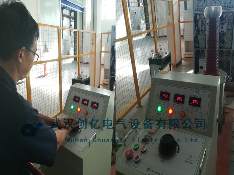隨后,用其購買的CYYD-15/150工頻耐壓試驗裝置對現(xiàn)場的10kV開關(guān)做耐壓試驗。客戶按照標準升壓至42kV一分鐘無閃絡(luò),試驗通過!